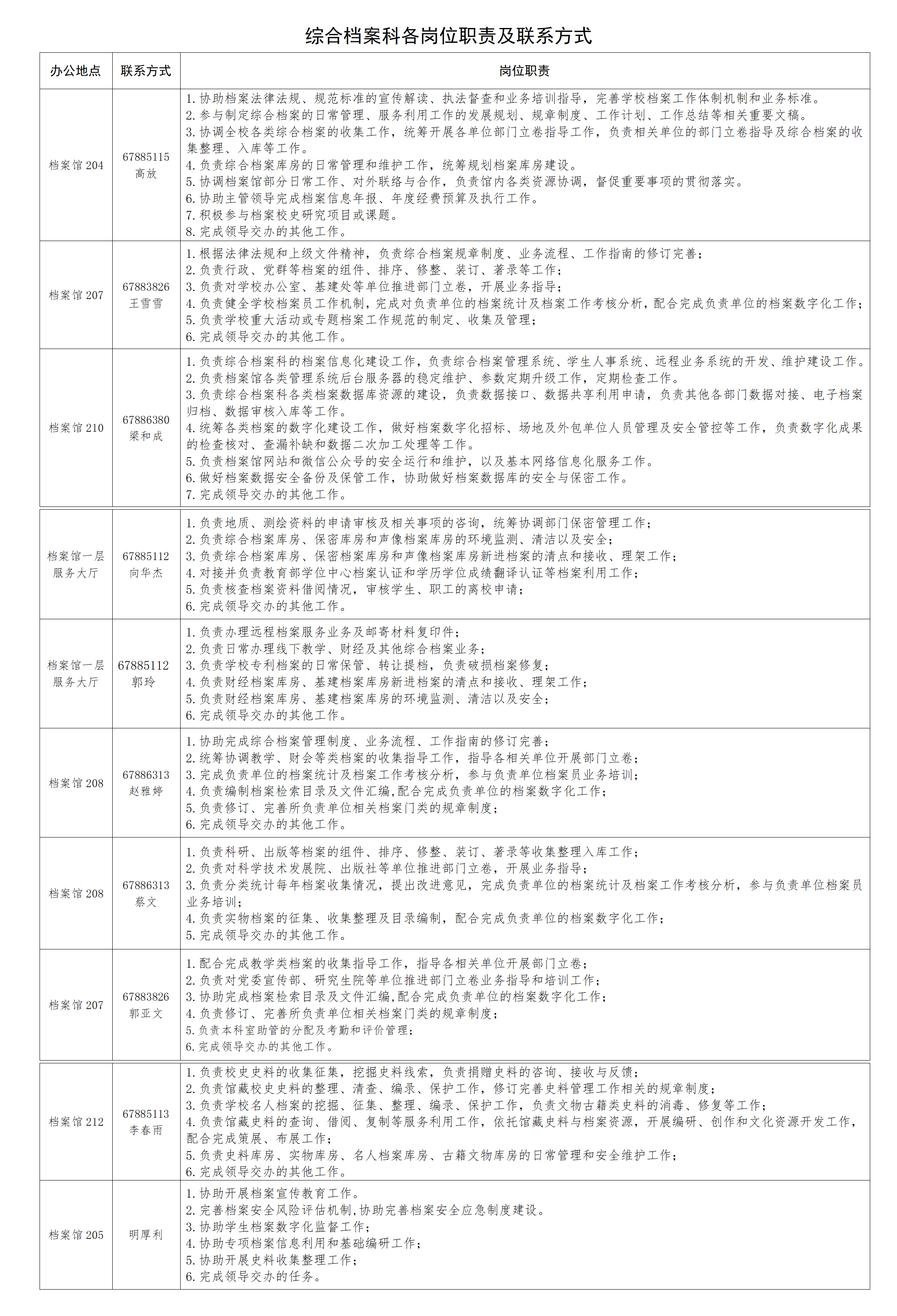 档案服务业务办理电话:67885112